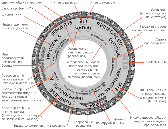Буква E (в кружочке) - шина соответствует европейским требованиям ECE.